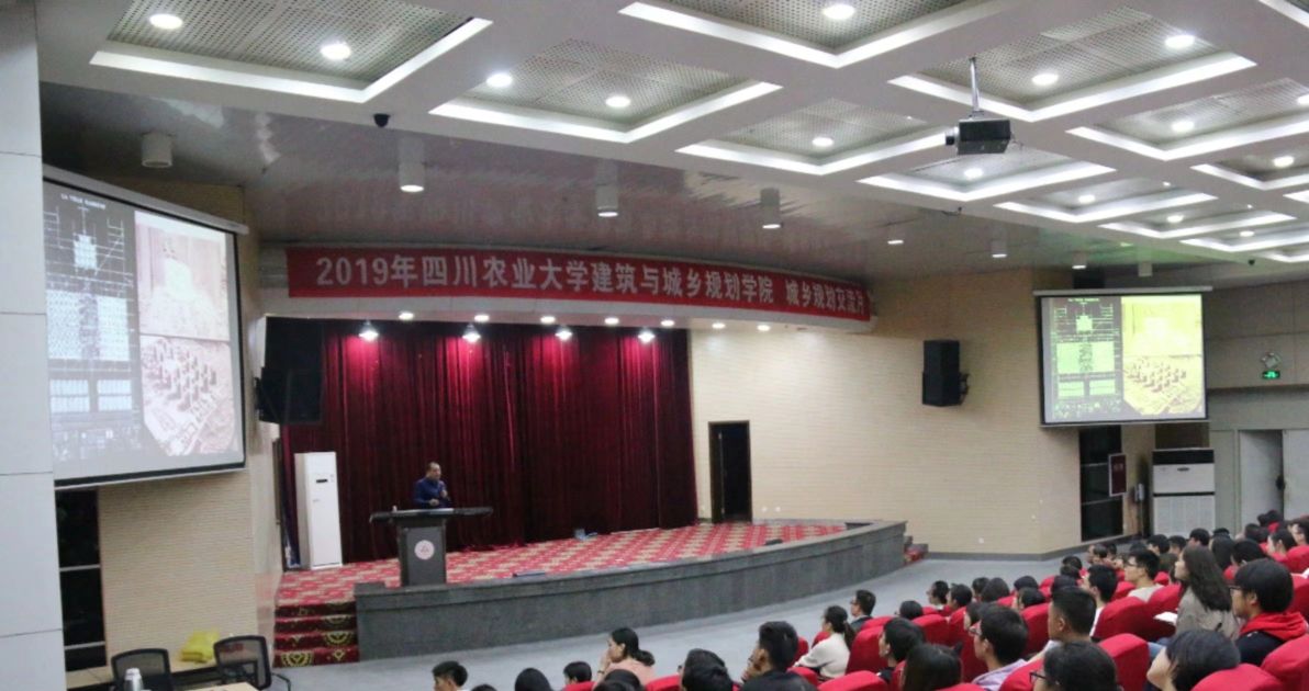 都江堰校区,面向建筑学与城乡规划学各年级同学开展专家专题讲座。栾峰教授所开展的讲座主题为“信念、理想与工具”,郑小明所开展的讲座主题为“城市暴走——时空汇精神,天府南中轴”。两位专家分别从专业知识与社会科学角度向同学们展示了城乡规划学的奥秘所在。峦峰教授在讲座中将更多的实地案例展现给同学们,告诉了同学们城乡规划这门学科究竟如何学习,如何工作。他将规划学与空间紧密联系到一起,为同学们的学习打开了新的思路。郑小明在与同学们的交谈中提到:以成都为例,中轴城市是一种美的体现,是人类所更能操控、更认可的排列方式。中轴城市规划是人类从居住条件向对艺术对美发展的体现,也是历史探索的一种成果。讲座中,两位专家都表示了对城乡规划专业发展的认可与期待、并同时充满信心。