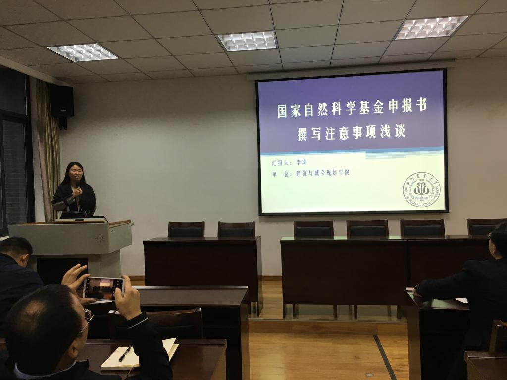 李琦老师2019年成功申报国家自然科学基金提出表扬。随后,李琦根据她成功申报的国家自然社会科学基金项目,分别从“选题”、“立项依据”、“研究内容”、“研究方案及可行性”、“研究基础”几个方面详细谈了自己的心得体会,以及撰写申报书的相关注意事项。李琦认为,成功申报国家基金的必备条件就是:新颖的选题,分层递进的研究背景及现状,详细的研究方案以及具体的可行性分析。当然,研究项目的创新点也是必不可少的。
