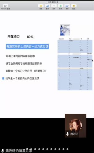 费崇洲老师谈到,网络教学不同于现场教学,提升学生的兴趣至关重要。在教授素描课时,他不将授课内容局限于素描本身,也会搭配服装设计、游戏设计等年轻人喜爱的内容。魏沂轩老师在建筑AII设计课中,也重点加入了游戏互动环节,增进学生学习动力。对于如何改变学生被动交流的问题,她建议增加回溯练习,以幽默方式讲述专业案例,给学生正面反馈,提升内在动力,同时增加适当的奖罚机制增进外在动力。