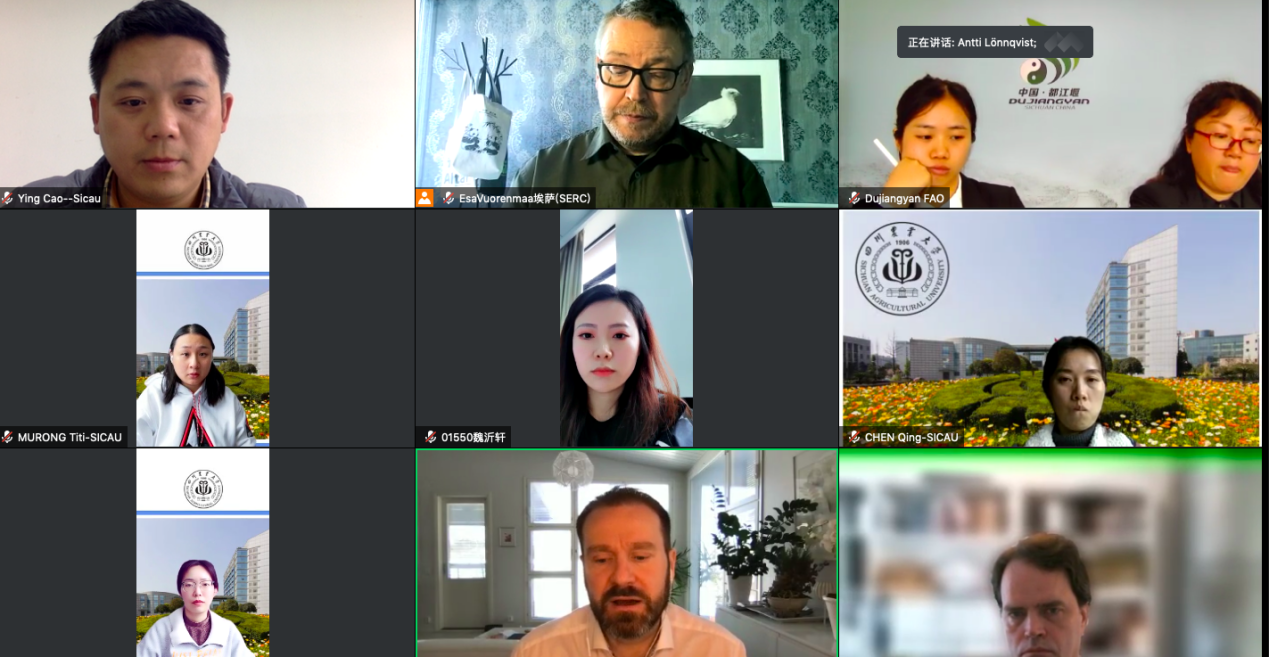 副院长曹迎、国际合作与交流处陈庆副处长、都江堰市政府外事办主任及SERC联盟协调人Esa,Antli教授和Juho教授等9人参加会议。