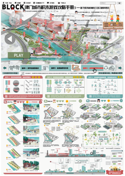 在两位老师的共同指导下,团队以极具创意的游戏界面表达方案,通过积极探索天津三岔口地区在人文、生态、空间和地块价值上的基地痛点,最终确立以积木机制作为解决问题的核心理念和手段。在设计中,团队结合积木、雪花片等空间游戏的体验过程来设置各项围绕设计策略展开的游戏关卡,生成的更新改造方案独具创意,从一定程度上重塑了三岔口对于天津卫的空间、历史和精神意义。