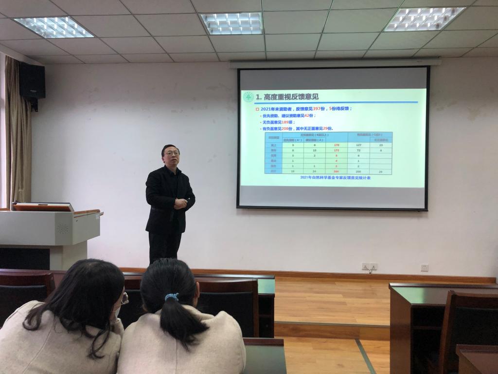 曹云忠以“巩固深耕齐努力 跃马扬鞭创辉煌”为主题,从成绩、潜力、工作安排三个方面为申报工作做出总体要求,介绍了2021年基金申报总体情况,深入探析了申报中存在的问题,鼓励和要求博士学历的青年教师,聚焦研究方向,2022年应报尽报, 91网站