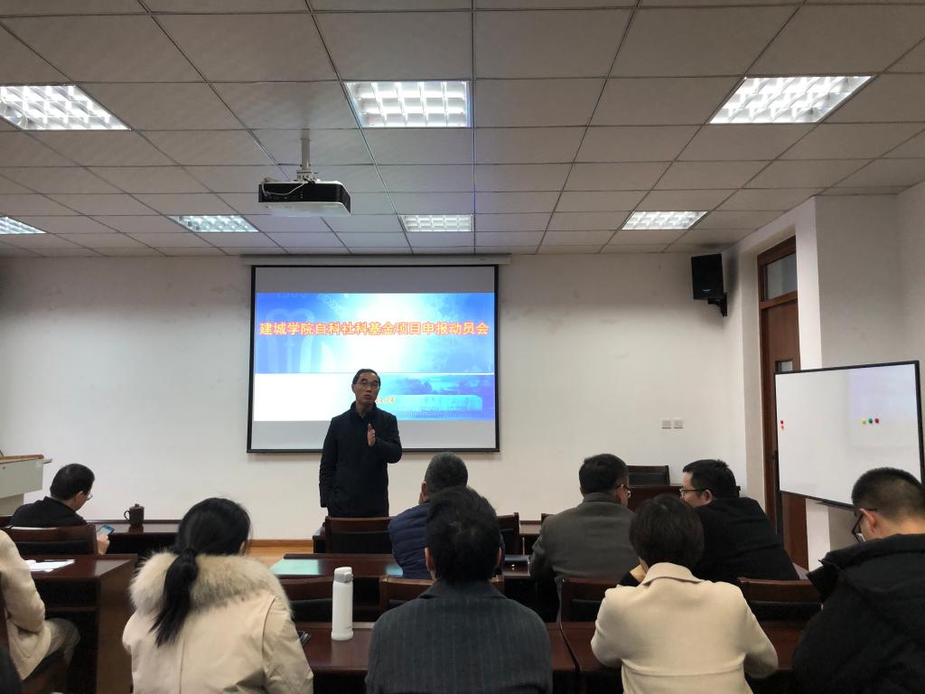 在2C405召开自科社科基金项目申报动员会,教学科研岗全体博士、副教授、近三年新进教师参加会议,会议由院长曹云忠主持。