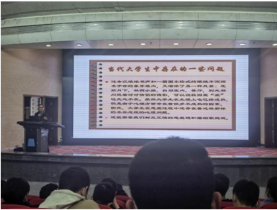 分党校第四期入党积极分子培训的课程安排和纪律规定,她指出在培训过程中要端正学习态度,遵守规章制度并希望参训人员进一步端正入党动机,坚定共产主义理想信念,增强为党的事业而奋斗的决心。申琼教授从党的发展历程出发并以实例深刻讲述了什么是马克思主义,为学员们解答了"当代大学生为什么要学习马克思主义"。