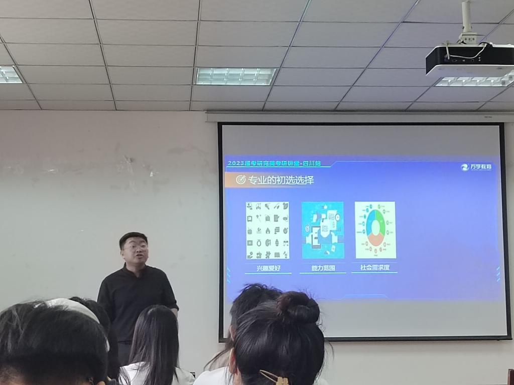 随后,朱老师主要讲解了专业的选择。他强调专业选择并不是盲目的,同学们需要从兴趣爱好、能力范围、社会需求度这三个方面来综合选择专业。其次,再根据专业的内涵和定义、专业的课程设置以及就业前景等来精选专业。接着,朱老师提供了一些实用的小技巧,解决学生在考研以及未来预备就业会遇到的疑问。