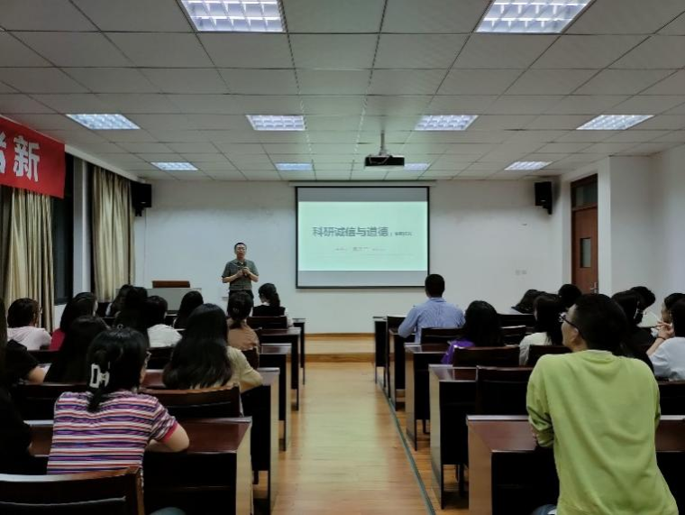 院长曹云忠以"科研诚信与学术道德"为主题发表了精彩的演讲。他围绕十大学术不端行为及其危害,提出了相应的预防措施,并通过国内外的案例向新生们展示了科研诚信的重要性。曹院长强调,除了学术研究能力的提升,同学们还应培养个人道德情操和团队协作精神,追求卓越而淡泊名利。