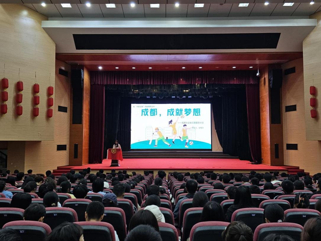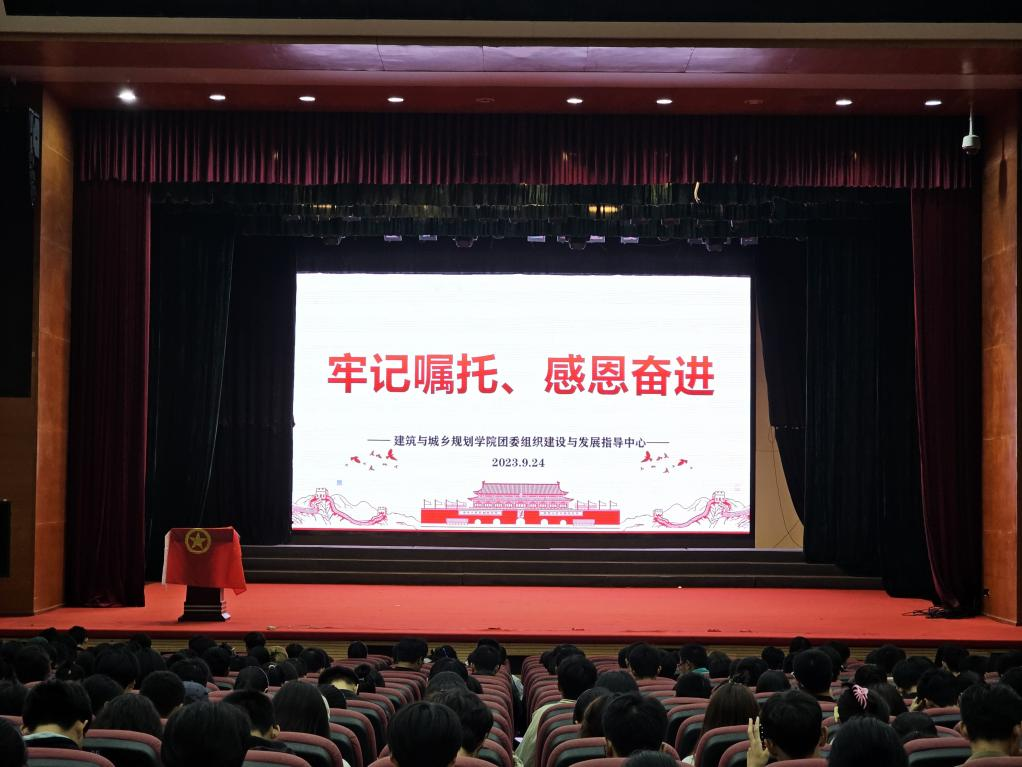 团委主办、2023级新生全体团支部承办的“牢记嘱托、感恩奋进”主题班团活动在活动中心正式举行。活动共分为“习近平总书记来川视察重要指示精神”主题微团课、“团十九大精神”主题宣讲、“实践归来话成长”主题沙龙、“百年校史”主题学习四个环节,来自13个班400余名共青团员参与本次活动。