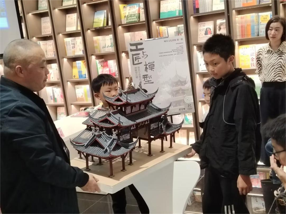 制作精良、结构严谨的建筑模型进行展示,详细介绍建筑构造中的精妙细节,引导观众探究建筑的内部结构,发现中国古建筑之美。此外,他还为观众解答了关于都江堰鱼嘴、二王庙等本地著名建筑的相关疑问,让大家对身边建筑的构成原理与文化内涵有了更加深刻的理解。最后,在廖老师的带领下,观众体验了简单的建筑模型制作。