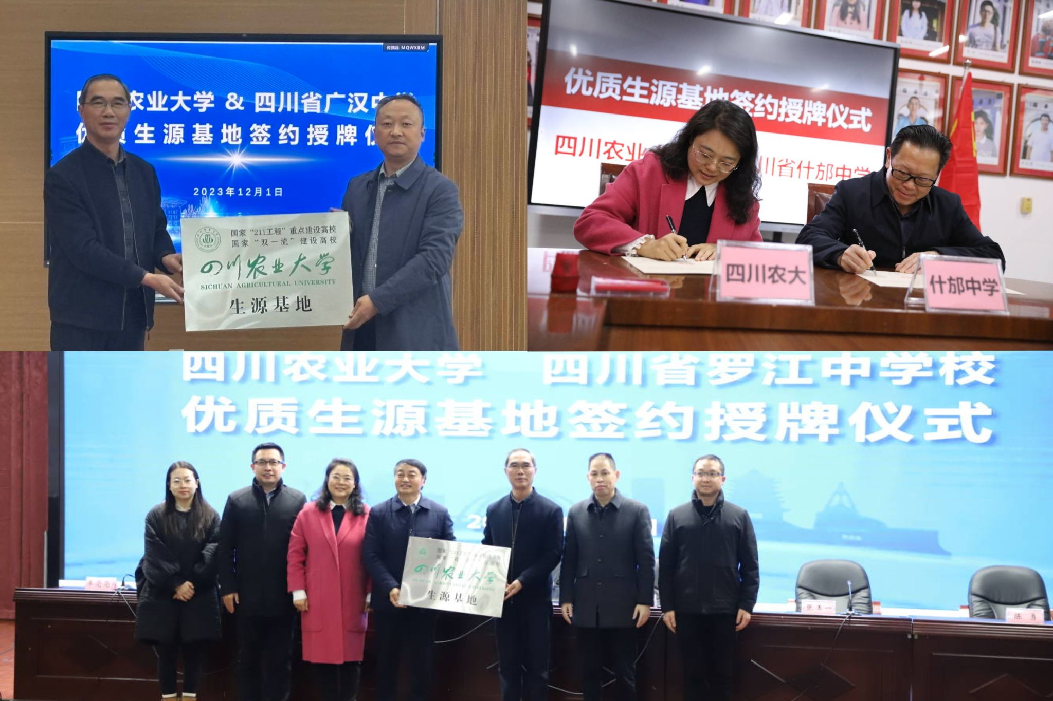 在与上述中学签约授牌仪式和交流座谈会上,申琼和庄萍萍分别介绍了学校的历史沿革、发展概况、办学条件、招生专业等情况,重点介绍了学校优势学科、人才培养、毕业生就业情况等内容。申琼和庄萍萍代表学校分别与广汉中学、罗江中学、什邡中学签订了优质生源基地建设协议并授牌。与德阳外国语学校就职业生涯规划、专业填报辅导、科普讲座等多方面达成合作意向,后续双方将共同推进优质生源基地建设。