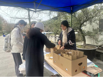 和师生们沉甸甸的祝福,期望美好的心意如冬日暖阳一般,温暖护航着考研征途上的奋进青年。值班的同学们带着微笑,将这份“暖心加油包”交到前来的考研学子手中,一声声考研祝福传递着朴实而真挚的祝愿。