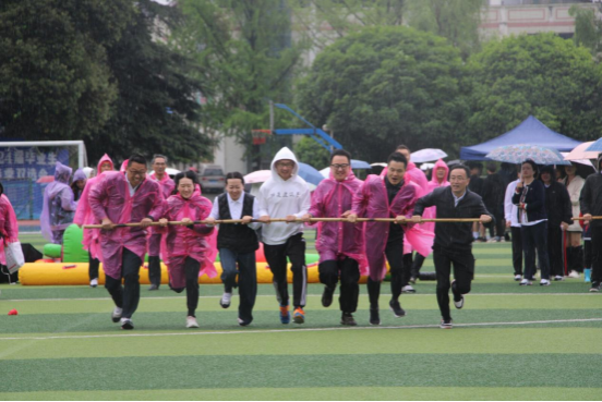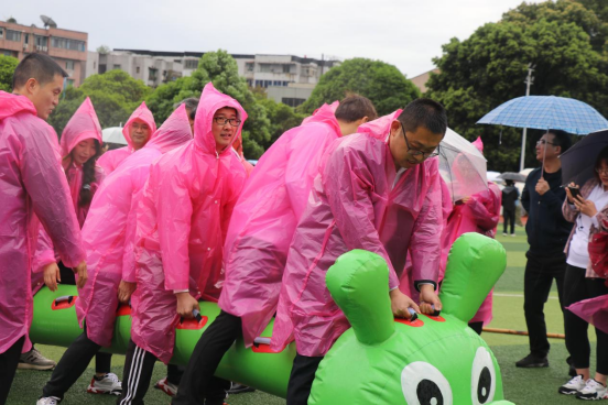 的教职工联合组建成五支队伍,踊跃投身于富有趣味的集体项目之中。