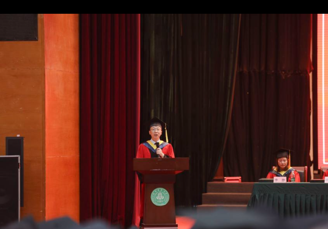 一朝沐春风,一生念师恩。城乡规划系万将军副教授作为教师代表发言。他以《哈利波特》中主人公的成长为喻,回顾了与同学们的点点滴滴,鼓励毕业生们勇敢面对挑战,忠诚于自己的信念,运用智慧解决问题,拥有追求梦想的雄心,祝愿同学们在人生的魔法世界中,不断创造属于自己的奇迹。