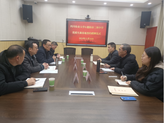 党委书记申琼、副书记付刚、招生专员车亮亮一行赴德阳市教育考试院,与德阳三所学校举行优质生源基地共建签约授牌仪式和交流座谈会,德阳市教育考试院副院长周建华、东汽八一中学副校长吕建春、什邡市七一中学党委副书记尹华君和成都师范学校德阳高级中学副校长王强善参会。
