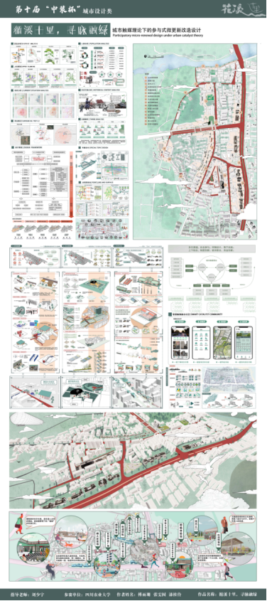 图为作品《循溪十里,寻脉融绿——城市触媒理论下参与式微更新改造设计》