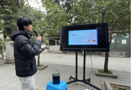 (图为林浙同学在社区向老人与孩子讲解城市空间布局的原理)