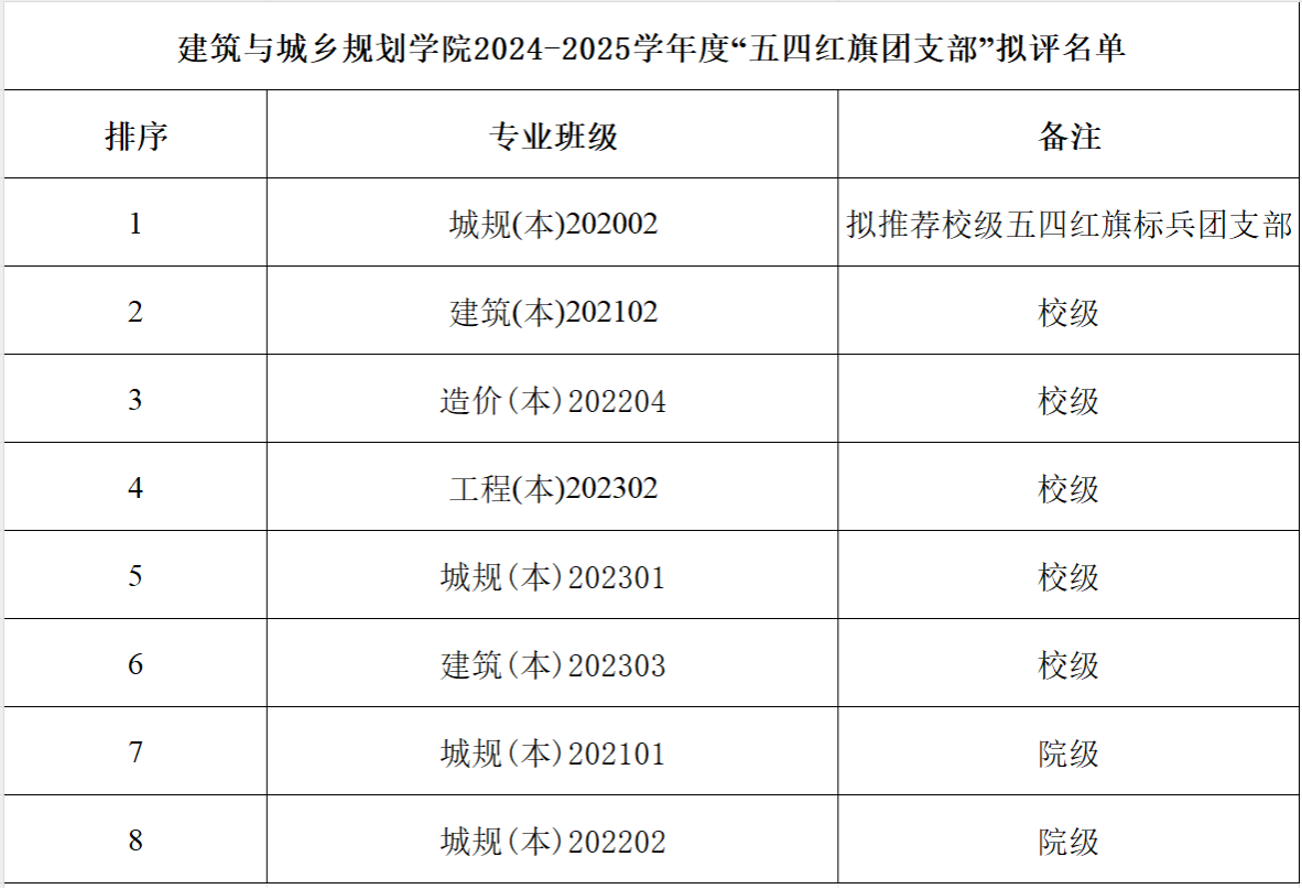 根据学校2024-2025学年团内评优工作要求,经团支部自愿申请, 91网站 团委审核,现决定拟推荐以下团支部为“五四红旗团支部”: