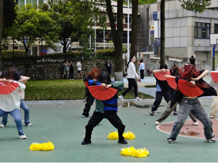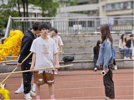 对训练时间及方式严格要求,认真准备,按照“先分组、后集体”的方式保证效率、提高整齐度,分“中心团+舞龙+打鼓+双截棍”四部分内容进行教学及练习,后期集中训练队形和配合变换。无论是变换多样的队形,还是整齐划一的动作,都凝聚了全体队员无数次的汗水和努力。