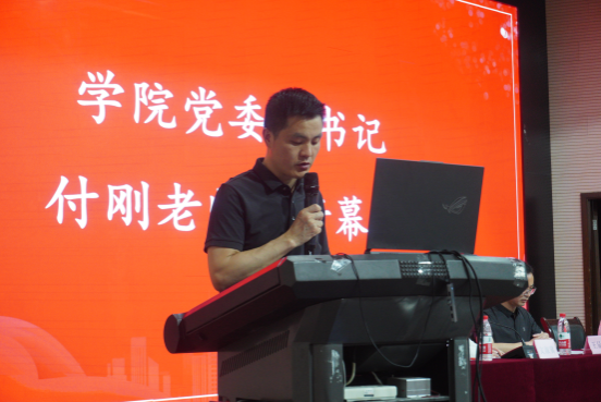 图为我院党委副书记付刚致开幕词