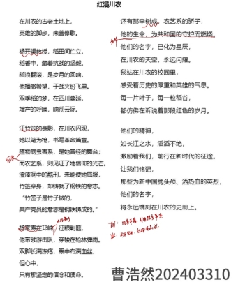 活动期间,同学们踊跃参与,以笔为媒,抒发爱国之情,表达对川农校友的敬重与爱戴。创作过程中,他们独立构思,用诗歌承载对都江堰红色文化的深刻感悟,每一篇作品都凝聚着同学们的心血。